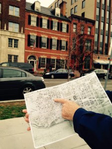 We attended the NPS events and were given a private tour by Lincoln in Civil War Washington guide and Lincoln historian, John O’Brien. Along the route, John identified where Elizabeth L.C. Dixon and her family lived when they first arrived in Washington described in her 1845-1847 diary.