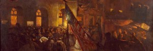 Chappel’s painting enlarges the actual size of the small room in order to include all of the night’s visitors.