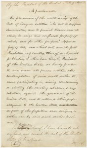 The original manuscript of President Lincoln’s Proclamation, written July 25, 1862 was a prelude to the Emancipation Proclamation.